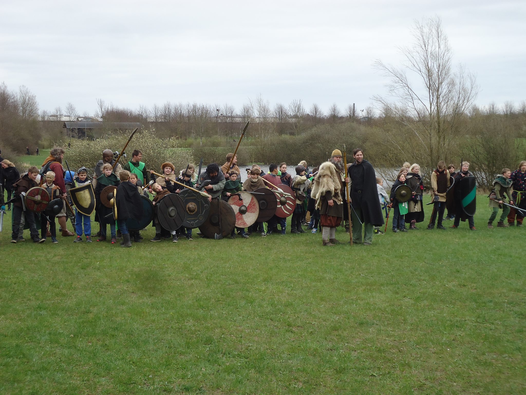 De var næsten 40 børn og en håndfuld voksne (som fik nydt deres kaffe og kage ganske velfortjent), mens vi underviste ungerne i sværdkamp og teamarbejde).